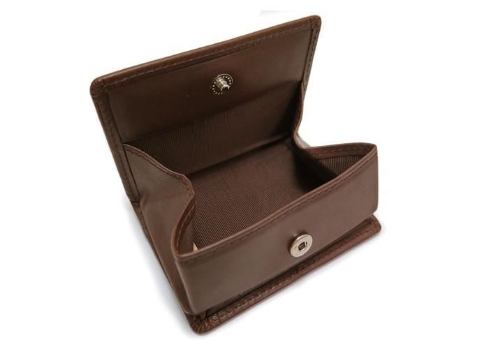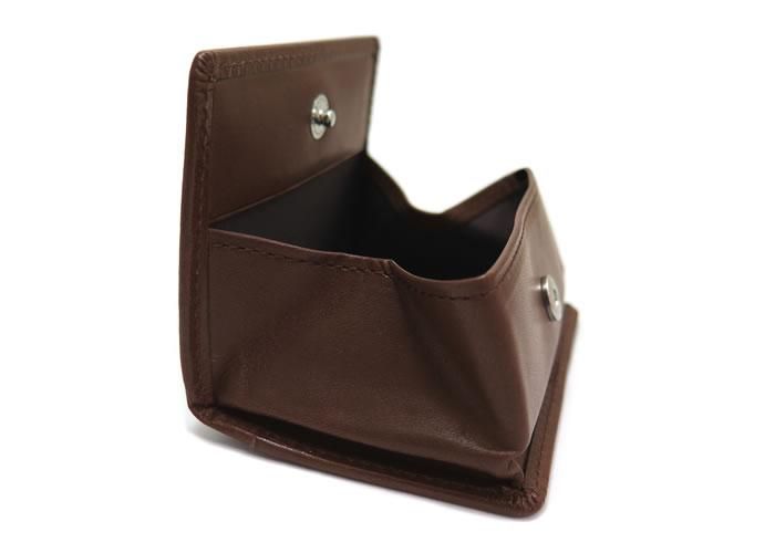 栃木レザー社こだわりの天然皮革を使用した革小銭入れです。ボタンひとつで大きく開閉するので出し入れしやすく裏にカードが入るポケットも付いておりコンパクトで機能性があります。
