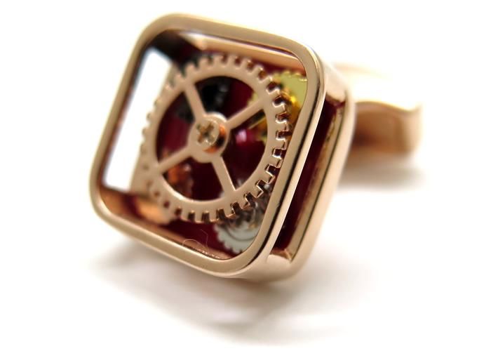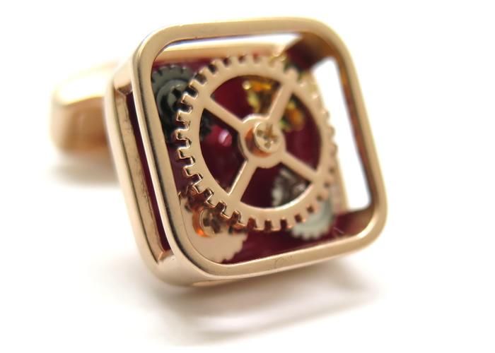 MECHANICAL QUATTRO GEARS ROSE GOLD & RED ENAMEL CUFFLINKS