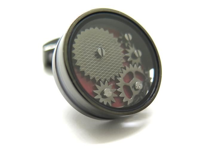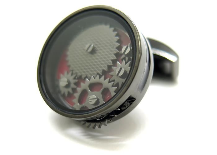 MECHANICAL CAROUSEL GEAR NUOVO BLACK IP & RED CUFFLINKS