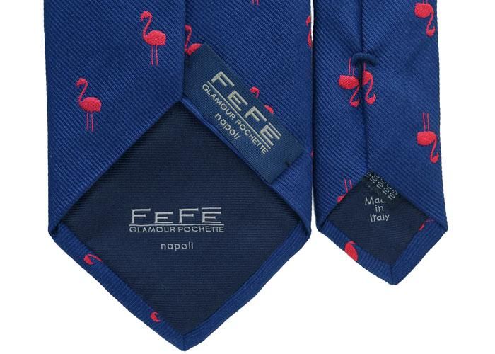 FeFe Glamour Pochette(フェフェグラムールポシェット)ジャガード フラミンゴ シルク プリント ネクタイ(ブルー)(ネクタイ/タイ) - ブランド