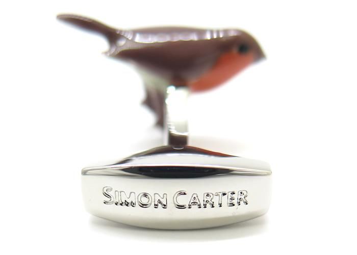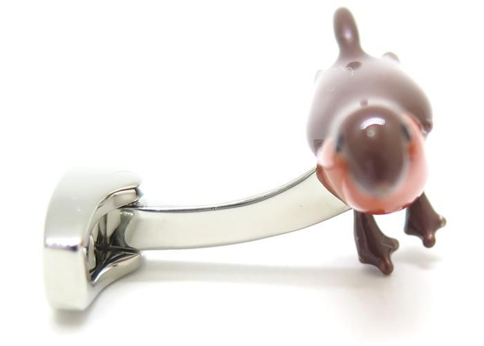 コマドリはサイモン氏のお気に入りの鳥です。ロンドンで庭いじりをしていると、生意気なコマドリが近くにやってきます。コマドリはおそらくミミズにしか興味がないと思いますが、サイモン氏の近くに行くのが好きとも思ったりするようです。そんな英国らしい羽をもつ友達へのオマージュを、手作業でエナメル加工を施し、実にチャーミングなデザインに仕上げたカフリンクスです。