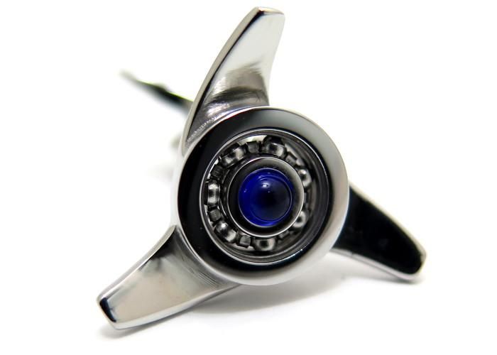 多くのクラシックカーの車輪を固定している 『トリプルイヤー』のホイールスピナーからインスピレーションを受けたデザイン。 可動式で中央にストーンを使用しています。